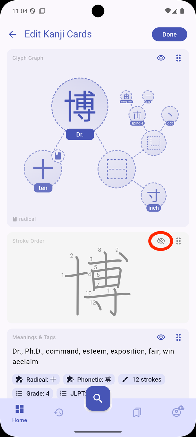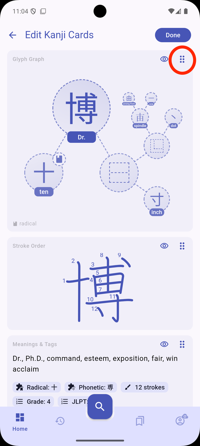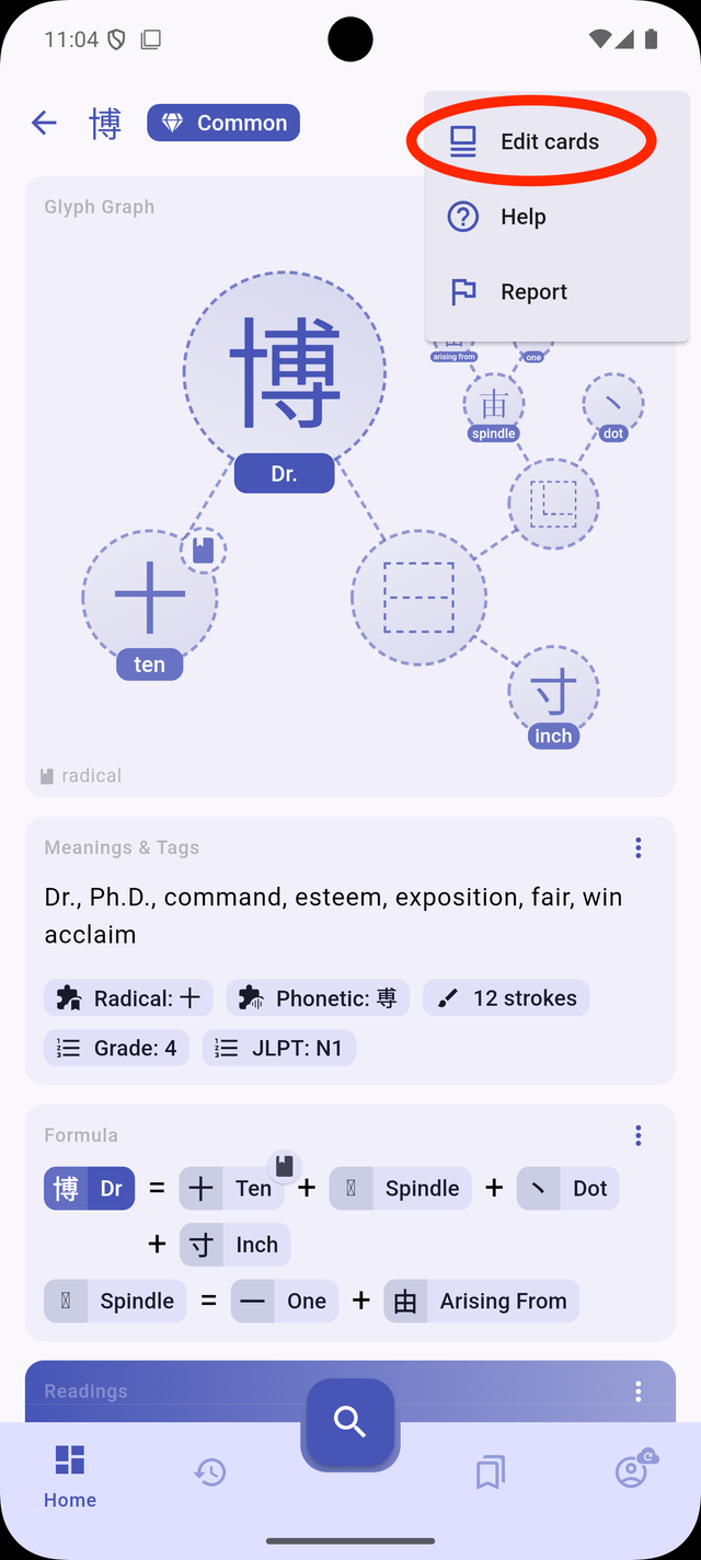 - Accessing Edit Mode: Open any kanji/word card in the dictionary and tap on the "Edit" icon at the top of the card.