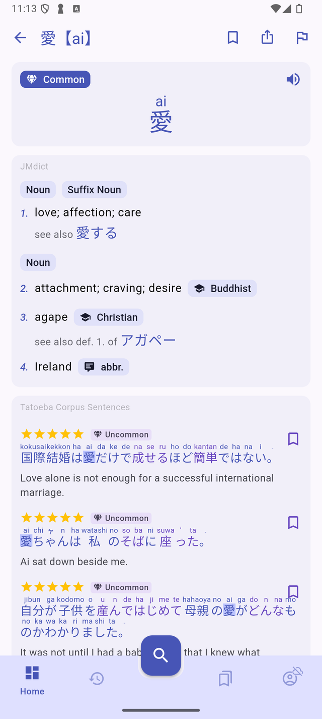 - Clicking on any of the Tatoeba Sentence example will take you to the Sentence Dictionary.