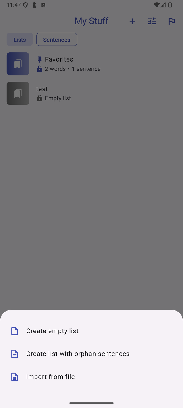 - Create list with orphan sentences: This creates a list with your sentences that are not in any list. That way you can delete them all at once.