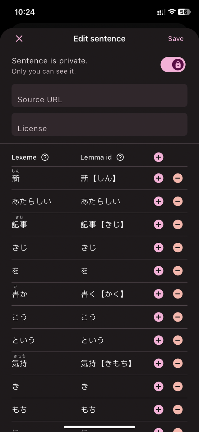 You can edit your own sentence by clicking the "Edit" button on the top right corner of your screen. You may also change the privacy of your sentences, toggle it off to let others see your work.